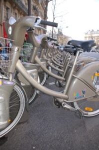 Deze fietsen zie je overal in Parijs staan en zijn heel makkelijk te “lenen”. Op de fiets krijgt Parijs toch een heel andere dimensie. Het lijkt wel of de stad veel kleiner is geworden; veel bereikbaarder, vriendelijker. De Parijzenaars hebben de fiets nog maar net ontdekt. Toch zijn er al verrassend veel fietspaden en fietsroutes, waardoor het redelijk makkelijk bewegen is door het Parijse verkeer. Nu dit vervoermiddel wordt gepromoot reageren automobilisten en autochauffeurs met steeds meer begrip op het nieuwe verschijnsel fiets in Parijs.