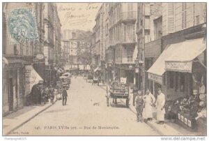 Al meer dan 100 jaar is de Rue de Montenotte een levendig straatje. Foto’s zijn van rond 1910 met de charcuterie (de slager) en de poissonnerie (visboer) van destijds. De derde etage (ons deel, aan de linkerkant op foto) stond er nog net niet.