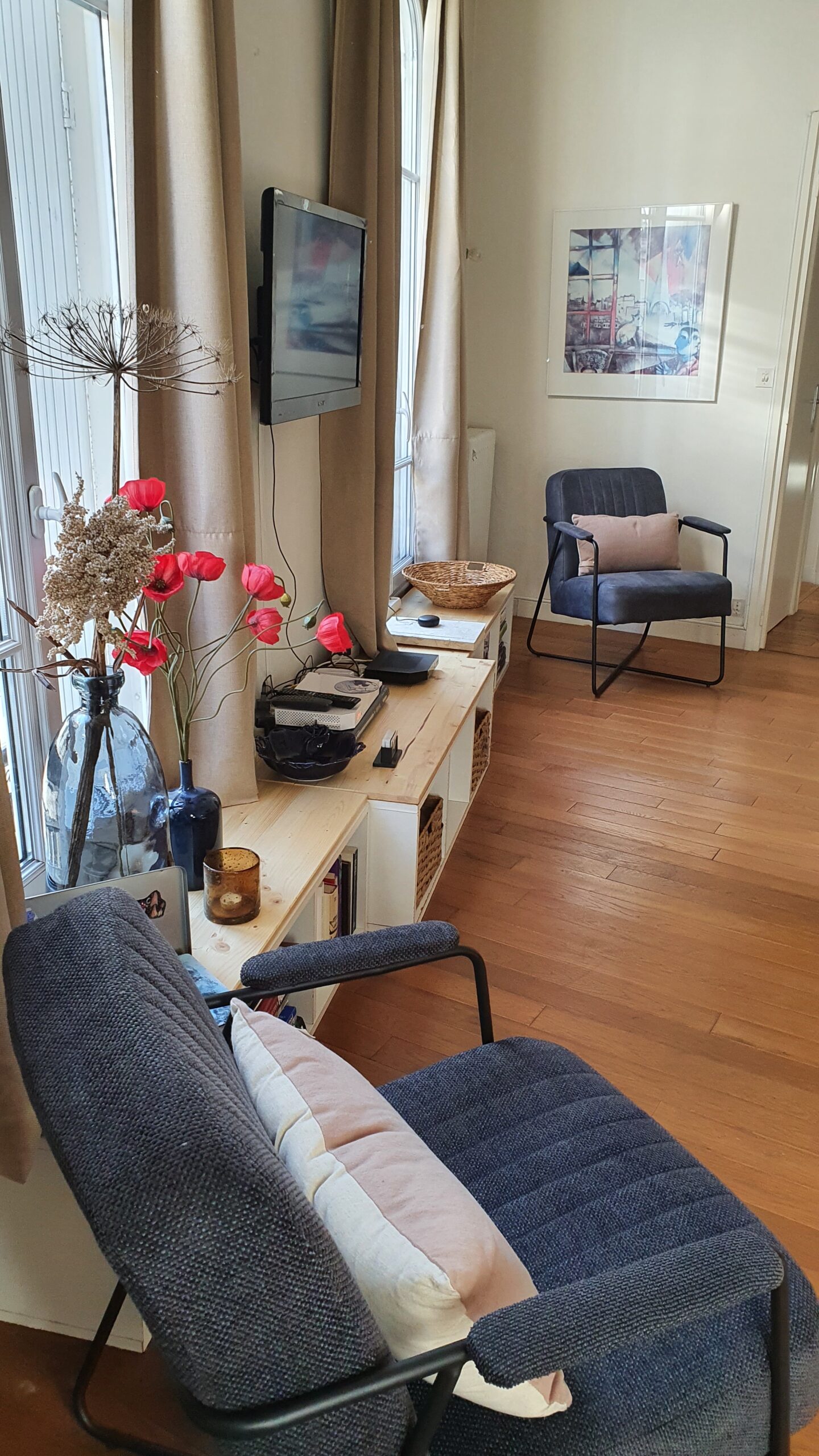 Ons appartement in Parijs is zoveel meer dan alleen een verblijf. Het is een plek om thuis te komen, om te ontspannen, op te laden en nieuwe herinneringen te maken. Het appartement (50m2) heeft hoge plafonds en vier grote ramen waardoor er veel licht is met een prettige zonsinval in de ochtend.